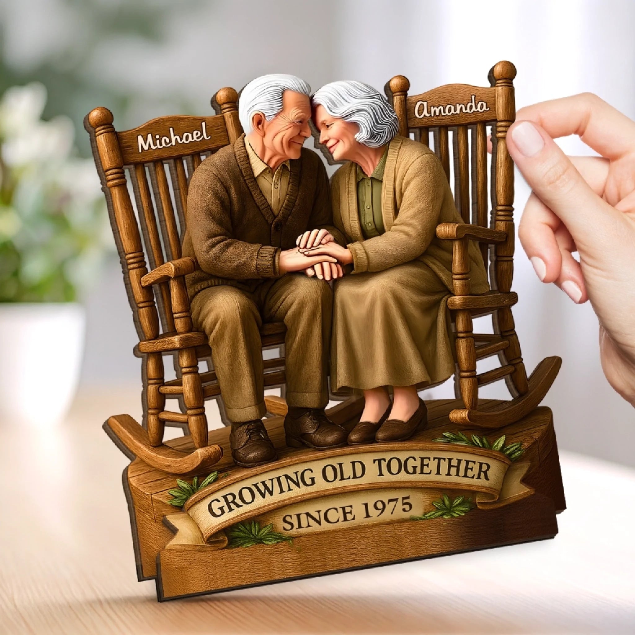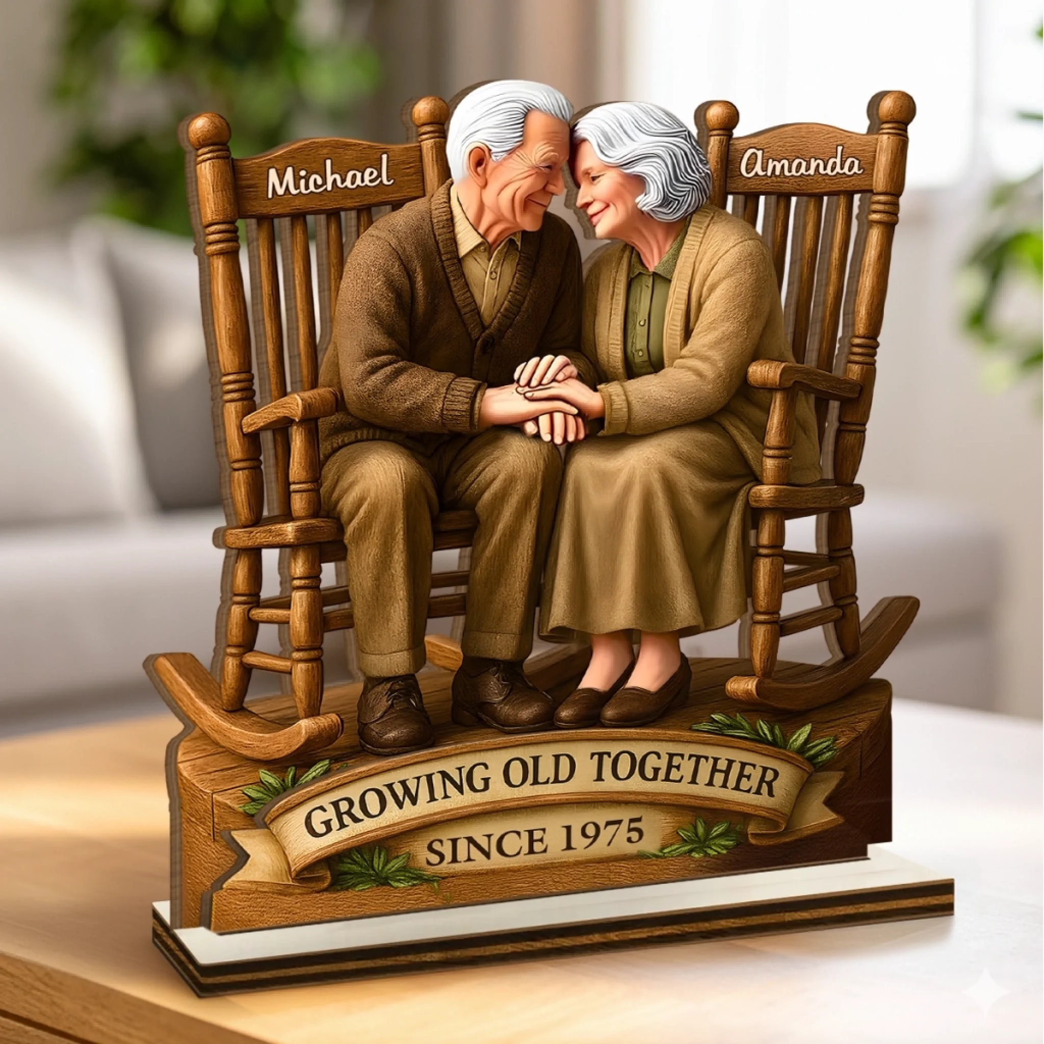 Love That Grows With Time - Couple Personalized Custom Shaped 2-Layered Wooden Plaque With Flat Stand - House Warming Gift For Husband Wife, Anniversary