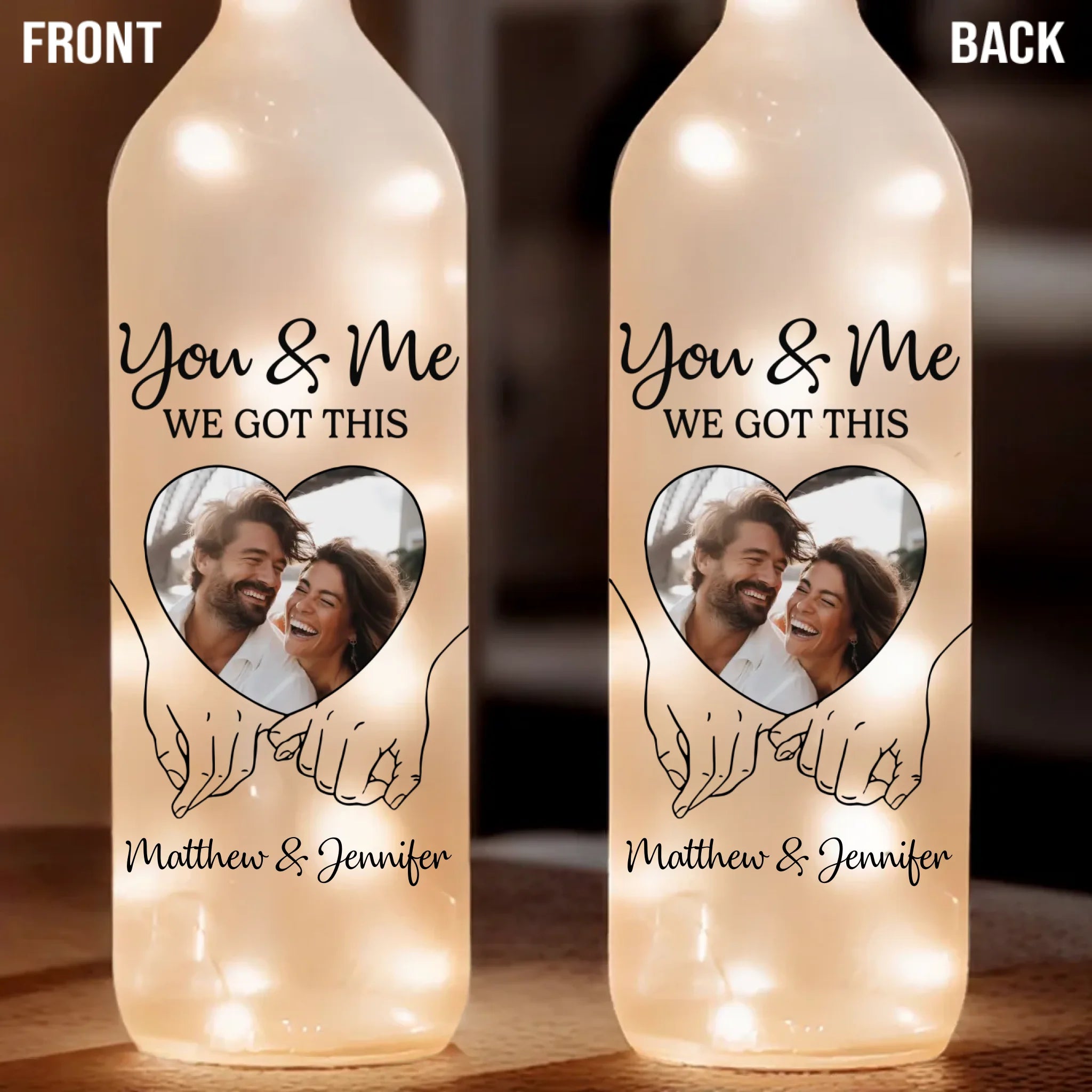Custom Photo Hand In Hand, We Conquer All - Couple Personalized Custom Bottle Lamp - Gift For Husband Wife, Anniversary